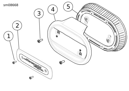 | 2. | Pasang elemen filter udara (5) dan penutup (4) dengan sekrup (3). | |