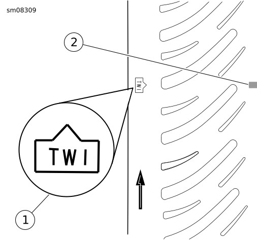 Segera ganti ban dengan yang ditentukan oleh Harley-Davidson saat baris keausan menjadi terlihat jelas atau hanya tersisa kembang ban sedalam 1 mm (1/32 in). Berkendara dengan ban yang aus dapat menyebabkan kematian atau cedera parah. (00090c)