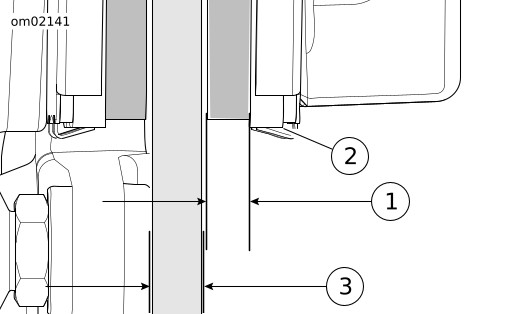 Lihat Tabel 1. Jika ketebalan bahan gesek kampas rem sudah mencapai titik minimum atau lebih tipis lagi, ganti kampas. Penggantian kampas rem harus sepasang. Kunjungi dealer Harley-Davidson.