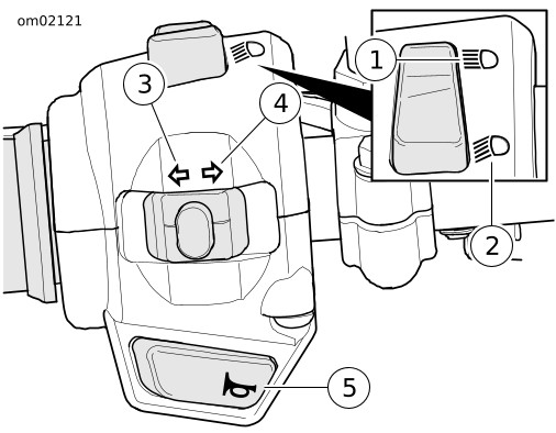 Sein kanan | Tekan sakelar ke arah kanan untuk menghidupkan lampu sein kanan. | |