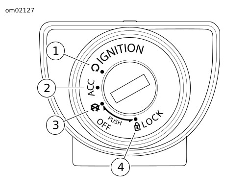 | IGNISI | Nyalakan ignisi, lampu, dan aksesori. Mesin akan hidup dan