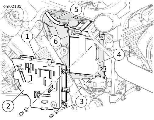 | 1. | Lihat Gambar 4. Lepas panel listrik. a. Lepas sekrup (3). b. Tarik panel listrik (1) dari baterai dengan hati-hati. | |