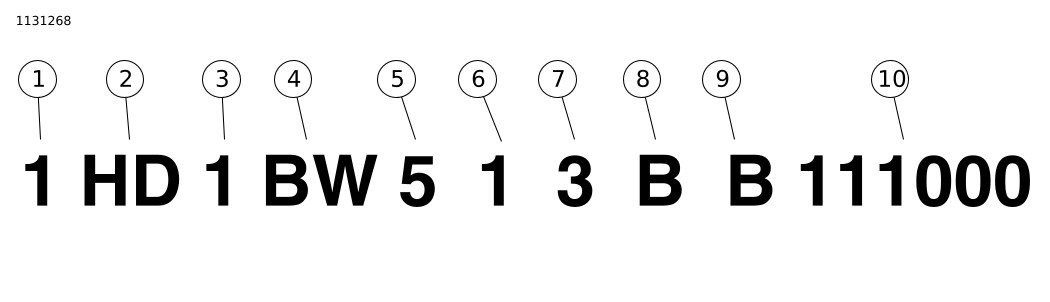 6 | Data di presentazione/calibrazione | Presentazione normale 1=USA 3=California A=Canada C=HDI E=Giappone G=Australia J=Brasile L=Asia Pacifica N=India | Data di presentazione di metà anno o di presentazione speciale 2, 4=USA 5, 6=California B=Canada D=HDI F=Giappone H=Australia K=Brasile M=Asia Pacifica P=India |