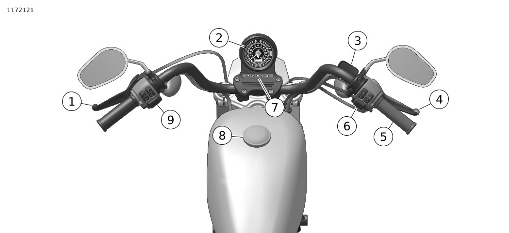 Запознайте се с местоположението на всички контролни прибори и обслужващи компоненти на вашия мотоциклет.