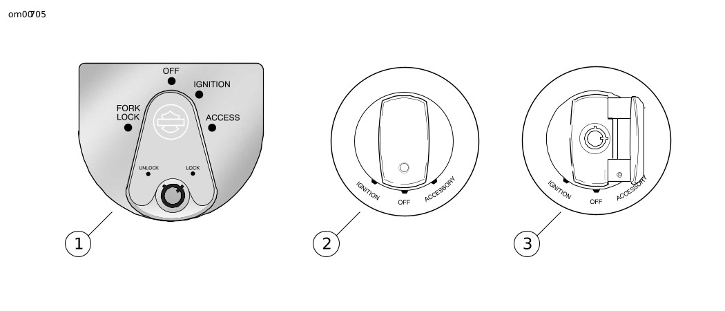 FLHR FLHRC FLHRS | Auf der Kraftstofftank-Instrumententafel | Der Schalter wird ver- oder entriegelt, indem man die