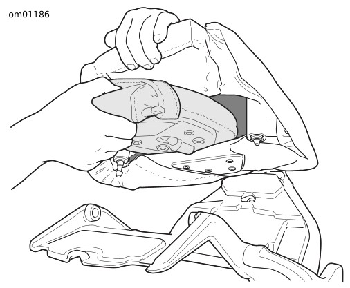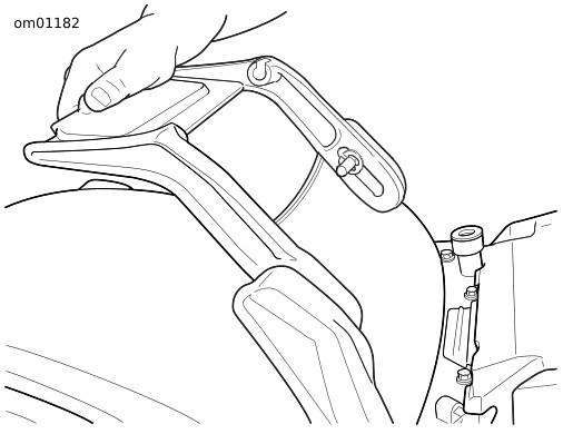 Abbildung 2. An der Hinterseite des Fahrersitzes ziehen, um die Passstifte zu lösen. Den Sitz nach vorne in Richtung Kraftstofftank klappen. Die Spitze des Sitzpolsters muss eventuell nach unten gedrückt werden, damit sie nicht an der hinteren Befestigung der Konsole hängen bleibt.