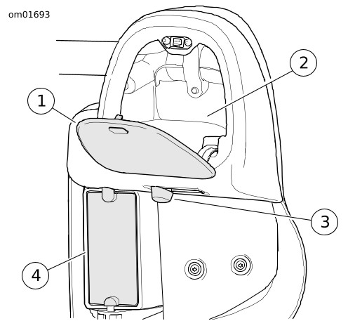 Joonis 1. Õhkjahutusega sõidukitel on gondli allosas panipaigad. Eemaldage pakiruumist väärtuslikud esemed, enne kui mootorratta järelevalveta jätate.