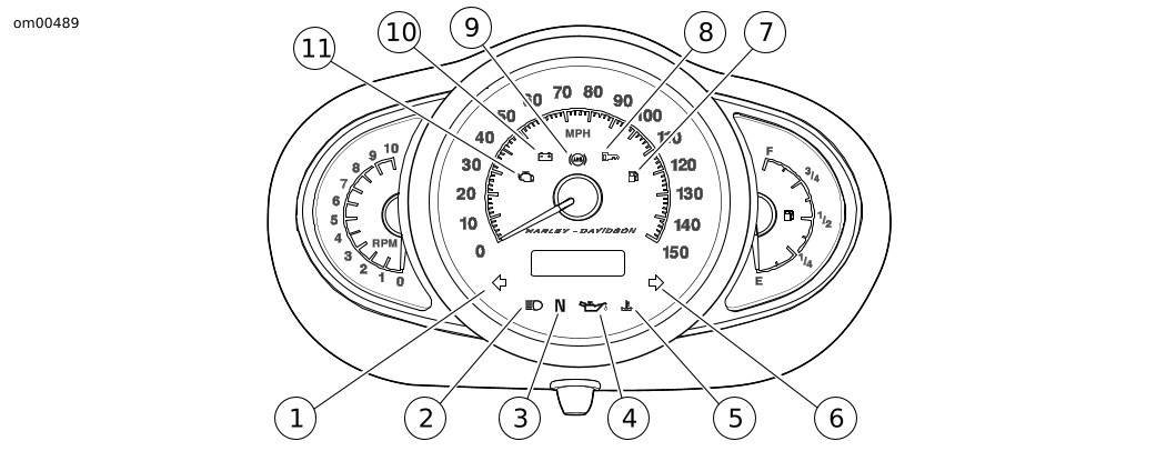ستومض اللمبة عند تشغيل الإشعال قبل بدء تشغيل المحرك. أثناء عمل المحرك، يجب أن تكون اللمبة غير مضيئة عندما تكون سرعة المحرك أعلى من سرعة التباطؤ.