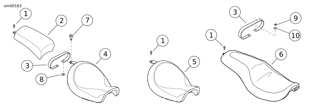 | 3. | قم بتركيب الحشية (10) والصمولة (9) لتثبيت شريط المقعد (3) لساق التركيب أسفل المقعد. أحكم الربط إلى عتاد مقعد موديلات Dyna (باستثناء الموديلات FXDWG)90-60 بوصة-رطل10.2-6.7 نيوتن-متر. | |