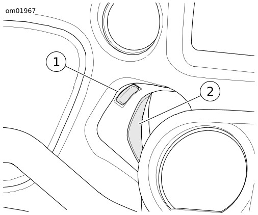 איור 2 (פתחי אוורור צדדיים). לחץ כלפי מטה על לחצן פתח האוורור עד שתישמע נקישה. דלת פתח האוורור תישאר במצב פתוח.