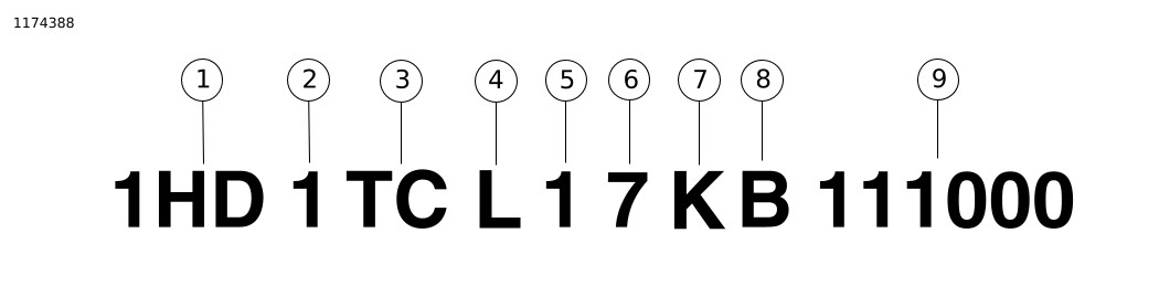 1 | מזהה היצרן בעולם | 1HD = יוצר במקור בארצות הברית 5HD = יוצר במקור בארצות הברית למכירה מחוץ לארצות הברית 932 = יוצר במקור בברזיל MEG = יוצר במקור בהודו MLY = יוצר במקור בתאילנד | |