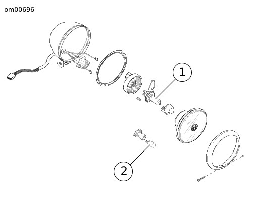 Cuando se requiera hacer un reemplazo, use solamente la unidad de haz de luz sellado o bombilla especificada, disponible en un concesionario Harley-Davidson. Un haz de luz sellado o una bombilla con el vataje incorrecto pueden causar problemas en el sistema de carga. (00209a)