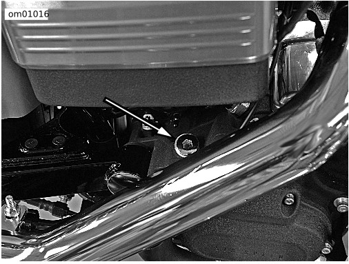 Asegúrese de que no haya lubricante ni fluidos en los neumáticos, las ruedas o los frenos al cambiar los fluidos. Se puede afectar la tracción de la motocicleta lo que sería la causa de la pérdida de control de esta, de muerte o de lesiones graves. (00047d) AVISO Al drenar o agregar lubricante, no permitas que entre polvo, suciedad u otros contaminantes al motor. (00198a) | ||
