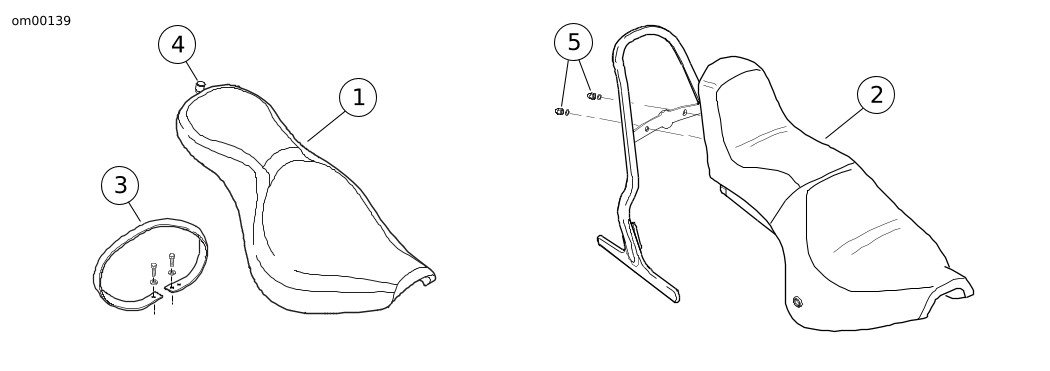 | 5. | En los modelos FXST, con la mano apriete el tornillo de montaje del asiento. En los modelos FXSTC, instale las tuercas ciegas a la parte trasera del asiento. | |