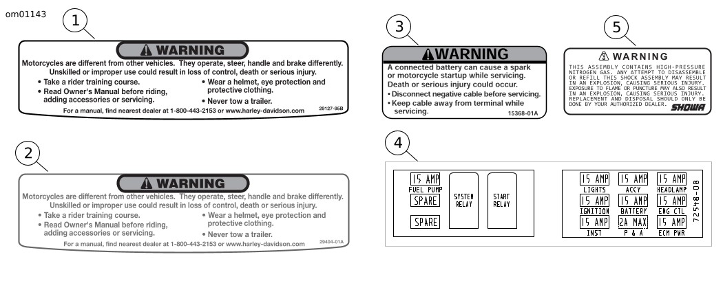 4 | 72548-08 | Etiqueta del bloque de fusibles | Debajo del asiento detrás de la batería |