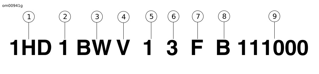 1 | Identifikation af salgslandet | 1HD=Oprindeligt fremstillet i USA 5HD = Oprindeligt fremstillet i USA til salg uden for USA 932 = Oprindeligt fremstillet i Brasilien MEG=Oprindeligt fremstillet i Indien | |