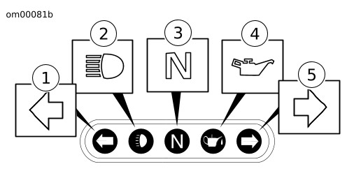 Lyset tændes, når tænding slås til før start af motoren. Når motoren er tændt, skal lyset gå ud ved hastigheder over tomgangshastigheden.